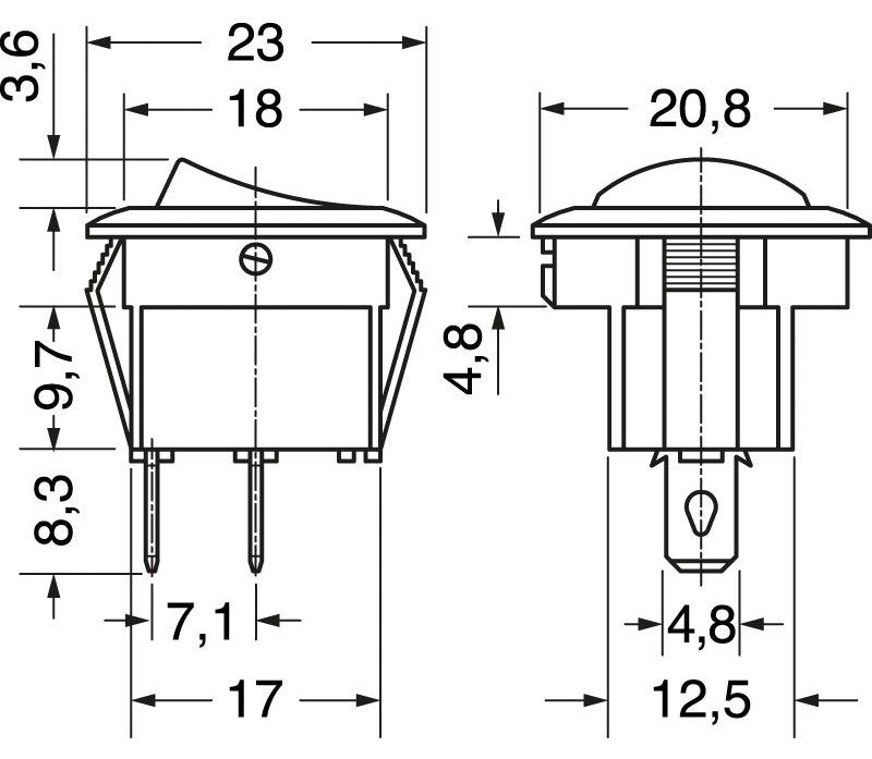 Code 20.1204Rocker switch round SPST ON-OFF panel mounting