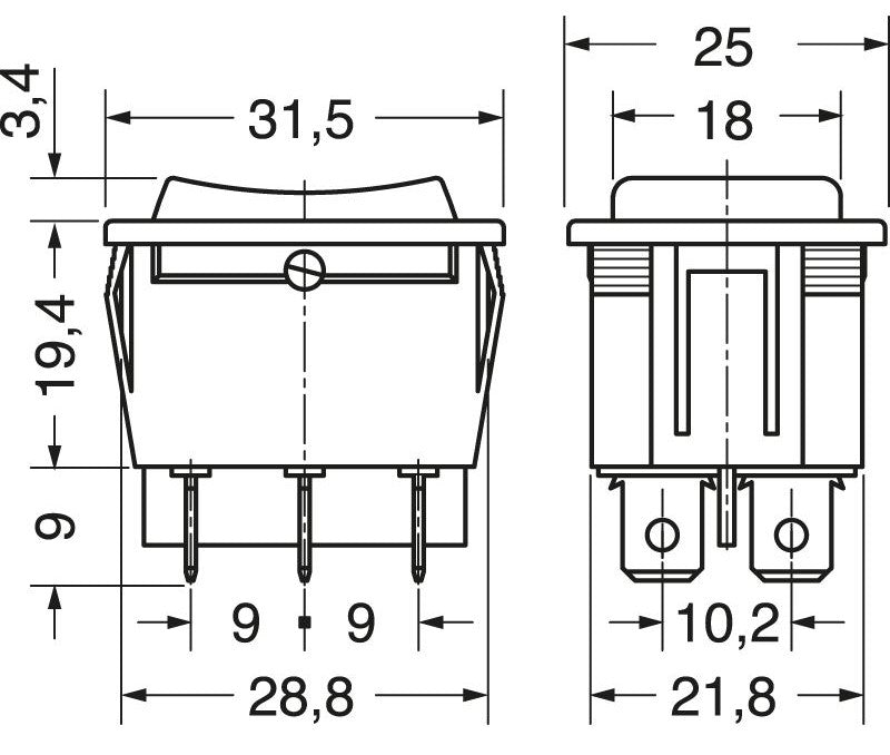 Rocker switch DPDT ON-OFF-ON AUTO RETURN panel mounting